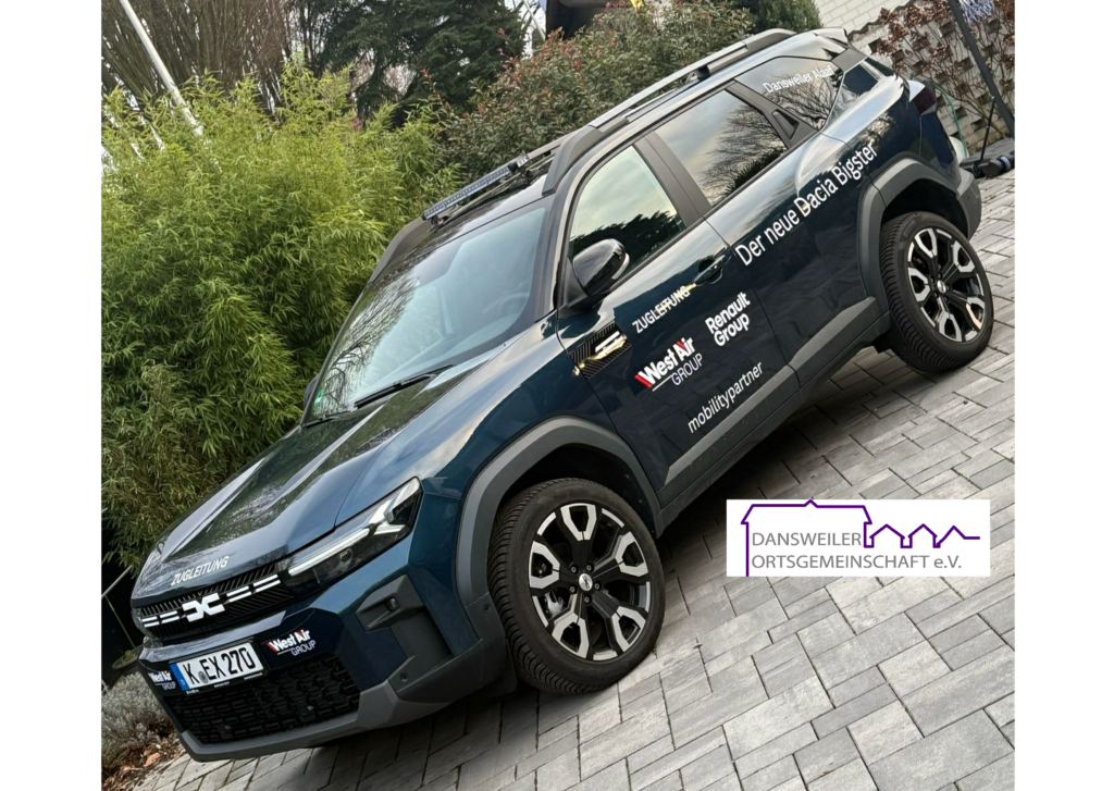 Bedanken möchte ich mich bei Christoph Iven für seinen großen Einsatz, der Zugleitung ein Zugleiterfahreug der Mobilitypartner West Air Group und Renault Group zur Verfügung zu stellen. Gerne werde ich diesen Dacia Bigster am Karnevalssonntag lenken.